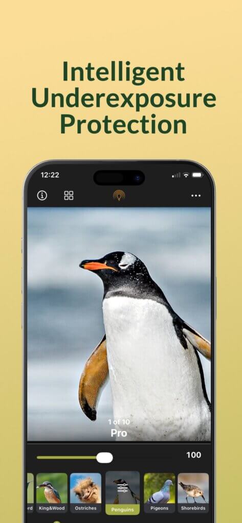 – Vogelfotografie-optimierte Bildverarbeitung: intelligente Belichtung, großer Tonwertumfang sowie lebendige, zugleich natürliche Farben – Lichter und Schatten perfekt ausbalanciert: KI-gestützte Optimierung des Dynamikumfangs mit natürlicher Wiederherstellung – keine ausgewaschenen Himmel, keine abgesoffenen Schatten – Details bis auf Feder-Ebene: intelligente Rauschreduzierung und kantenbewusste Schärfung – RAW/ProRAW- und 16-Bit-Export: hohe Farbtreue für Farbkorrektur und Druck (TIFF/PNG) – Schnelle Looks für Profis: Vogelfotografie-Stile und Presets mit einem Fingertipp, individuell anpassbar – Datenschutz im Blick: gesamte Verarbeitung erfolgt auf dem Gerät – kein Cloud-Upload zur Bearbeitung