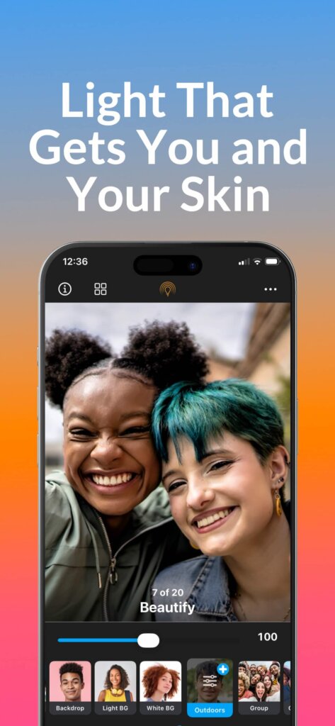 Keine Spielereien. Keine Verzerrung. Nur du – authentisch und selbstbewusst. Aufnehmen → Swipen → Teilen 1. Mit der integrierten Kamera aufnehmen – der Radiant Editor öffnet sich automatisch. 2. Vorschläge: Analyse auf dem Gerät liefert kontextabhängige Optimierungen, die natürliche Farben, Texturen und Stimmung bewahren. 3. Durch Porträtstile swipen (schnelles Ausprobieren mit Lenses). 4. Feinjustierung mit einem Regler – oder erweiterte Werkzeuge für präzise Kontrolle öffnen. 5. Nicht-destruktiv in der Fotos-Mediathek speichern und überall teilen. Alle Werkzeuge lassen sich sogar im Schnellbearbeitungsmodus mit nur einem Daumen nutzen – eines der schnellsten und einfachsten Editier-Erlebnisse überhaupt. Bearbeitungen sind nicht-destruktiv und metadatensicher und werden direkt in deinem Album gespeichert – dein Bild, dein Licht, deine Geschichte.